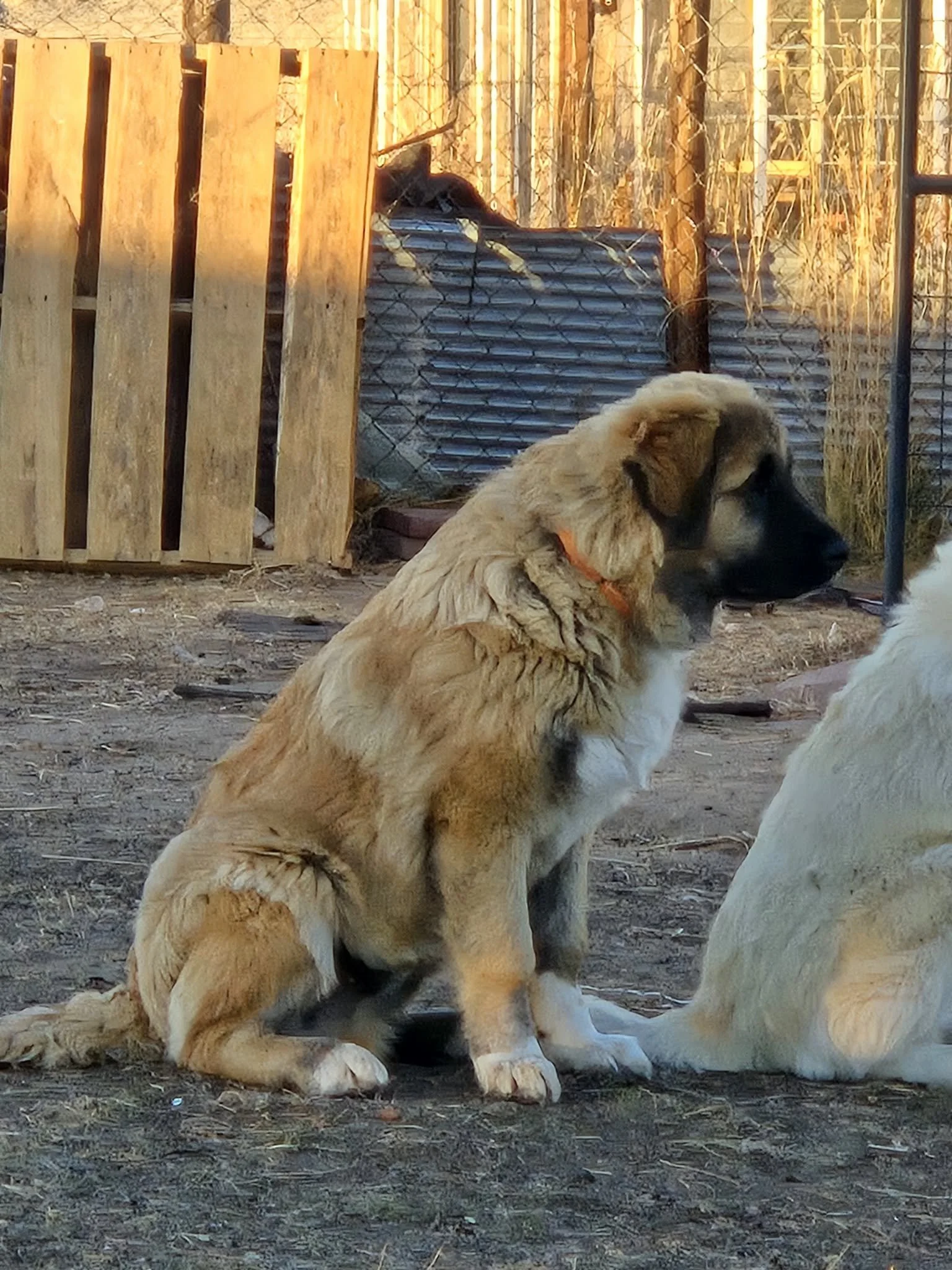 Her partner MadEye is a huge presence physically, but is our heart and soul guardian. He loves his puppies, and has been in charge of nanny duties since the pups were 3 weeks old. No one is allowed to pass him by without a lean and several pets. He has won over every human who has visited the farm without exception. MadEye is the balance for our highly driven alpha, providing backup and physical size in confrontation with bears, mountain lions, coyotes, foxes, and aerial predators every single day. He is nurturing and playful with his pups, and checks on the pups every single time before offering backup to our alpha. Freja provides security to our property, while MadEye’s priority is always the safety of his charges from pups to small chicks that have gotten loose. He will standby until they have been retrieved and secured.