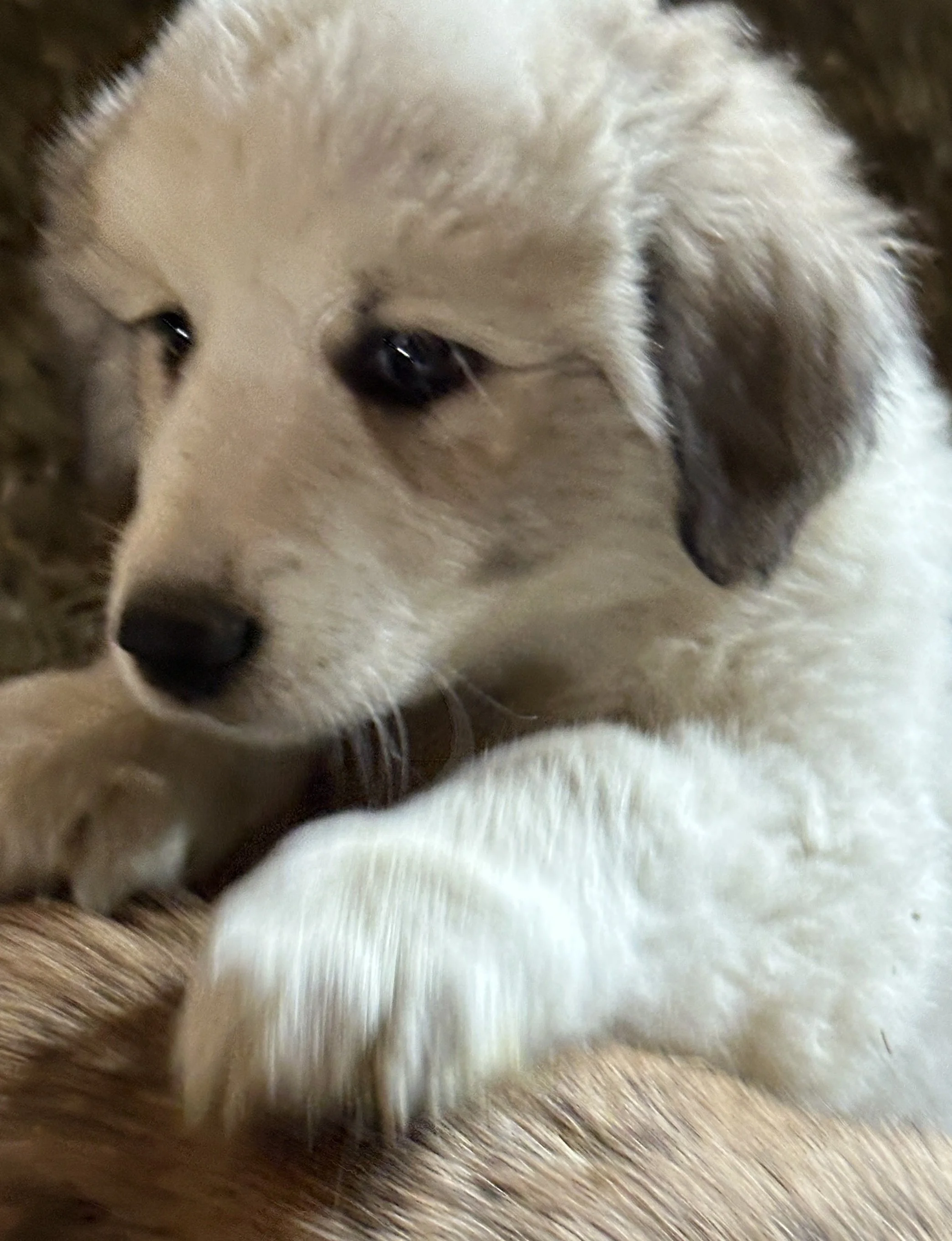 This handsome, soft-hearted pup has a calm and affectionate nature. During his 7-week temperament evaluation, Blizzard showed more of a family companion or couch marshmallow personality than a high-drive guardian instinct. He would be an excellent match for a loving home, family, or small farm looking for a loyal companion.