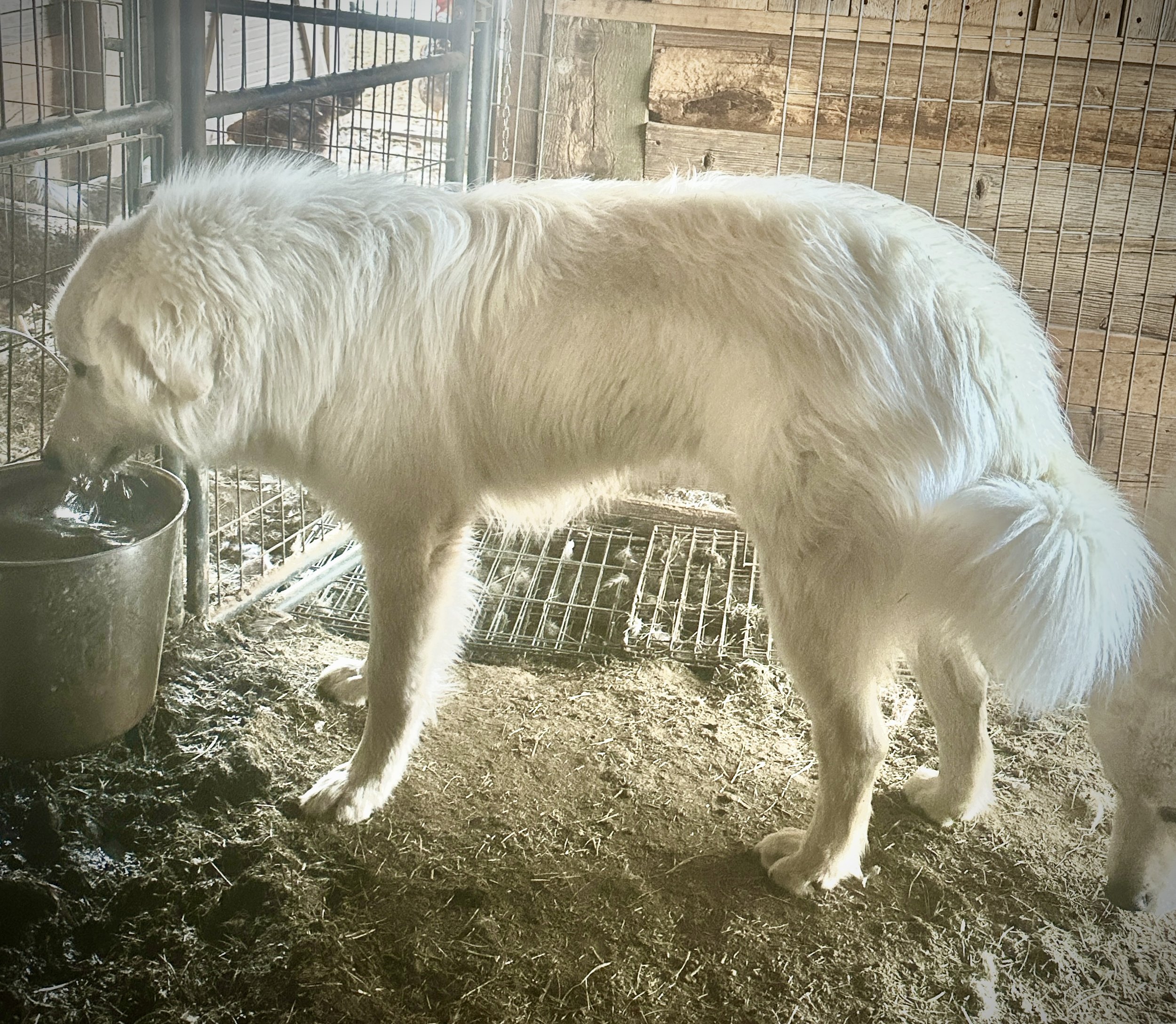 Posted March 18, 2026 — Colorado. Huge 14 month male G4 CMD. Elwood is a people dog, loves attention, has been in with our goats since summer. He is a diligent guardian. Prefer to place him where he will be a solo guardian or guard with one other female as a team. He must be 32 inches at the shoulder… a giant. $1850 wendyjfrancisco@gmail.com, 970-623-0598.